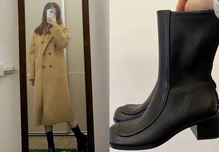 这是比较常规常见类型的中筒靴子,骑士靴几乎适合所有人、所有搭配,不挑肤色、身高,由于都是皮质产品,比较耐磨、耐穿,一双可以穿很久。使用骑士靴进行秋冬穿搭,完全不用发愁自己的腿型。跟腱短、小腿肚大、腿不直,都可以遮掩。