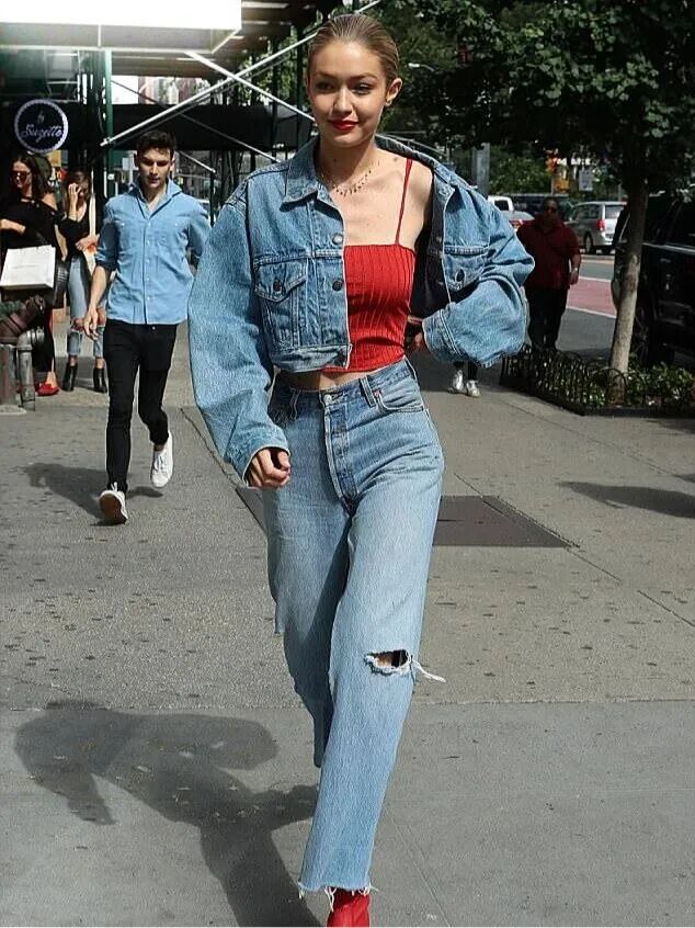 你可以像博主一样选择正红色吊带与之搭配,款式、配色都足够新颖,值得学习借鉴,你也可以选择其他流行配色的内搭与之搭配,只要肤色允许,牛仔蓝都能包容。