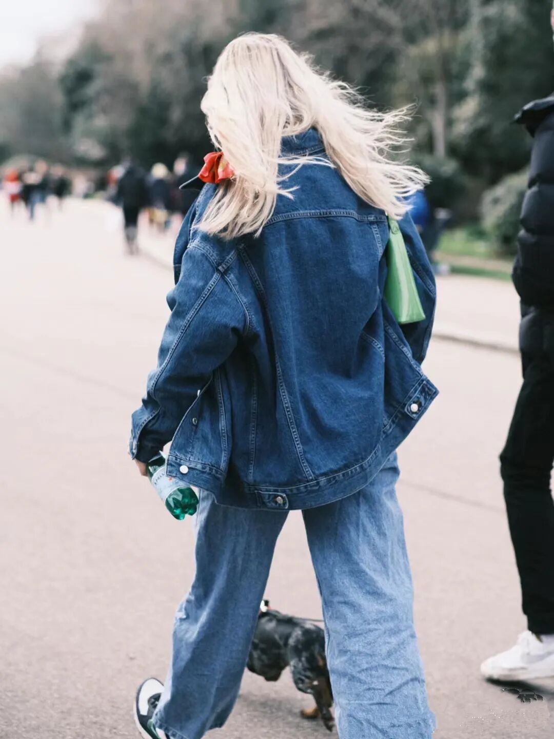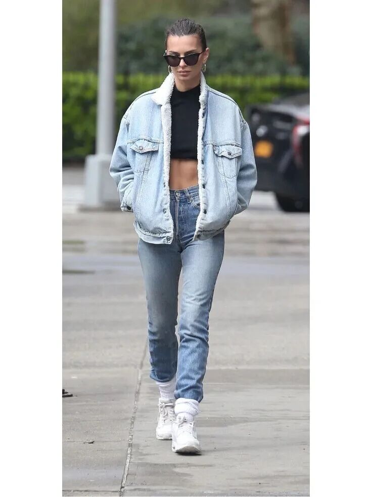 除了整体款式和整体修身的模式外,大家也可以选择上松下紧的穿衣模式,像博主身上这类宽松牛仔外套搭配紧身牛仔裤的模式就非常nice。