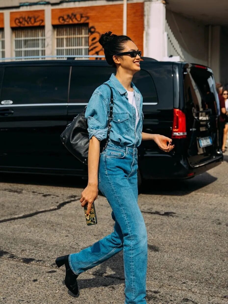 当然了,如果大家不相信自己的选款和搭配能力,或者没有时间认真挑选牛仔单品,害怕配色不和谐导致整套造型功亏一篑,可以直接用牛仔套装替代。