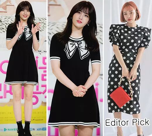 [Editor Pick] 若想展现出另一种可爱感,不妨选择加入了白色波点的黑色连衣裙。这样的款式不仅给人一种复古的感觉,还传递出了打破平凡的穿衣风格,将复古与可爱相结合。