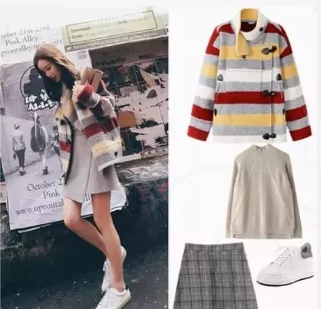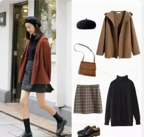 这款短款的呢外套,卡哇伊的线条装饰可爱灵巧不失活力搭配可爱校园风短裙,轻松打造可爱公主范儿,搭配时尚运动鞋时尚保暖,单色高领毛衣可爱灵巧,深红小包包平添几分性感。