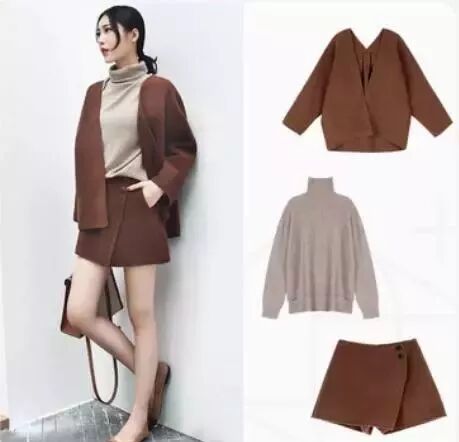 这个裙裤看起来非常有设计感,随性中带一点酷酷的赶脚。搭配同色系外套,简单的一件基础款高领毛衣穿出非常棒的时髦感。