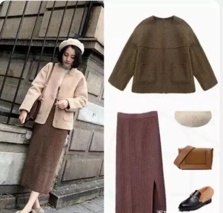 羊羔毛大衣大大的廓形有种穿上男友外套的安全感,更容易显出腿的纤细,毛翻边的简单设计也可以将质感发挥出彩,展示都市女性率性大方的气质风度。内搭基本款高领毛衣和针织半裙,温柔又优雅,上班逛街都OK。