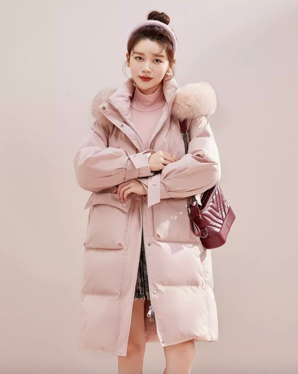 【粉色羽绒服】【李一桐同款】雪中飞2023秋冬韩版廓形马卡龙狐狸毛领长款羽绒服