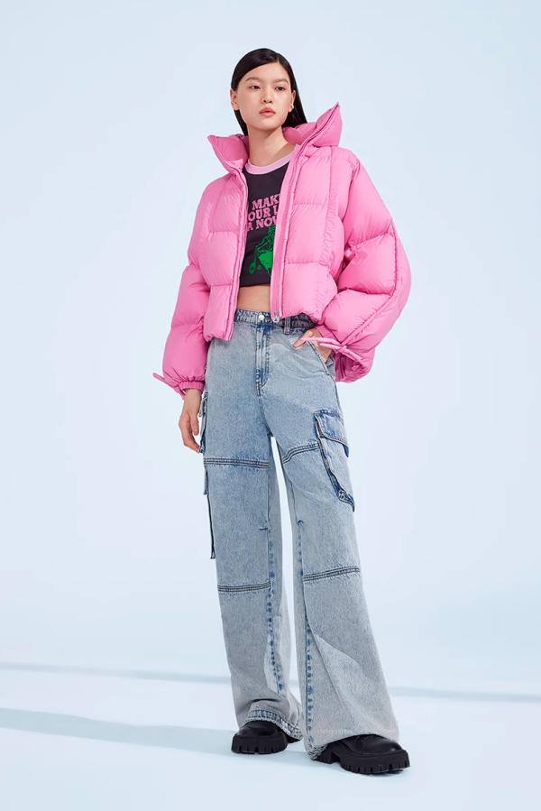 【玫红色羽绒服】【澳洲进口白鸭绒】huhu羽绒 欧时力 超轻外套2023新款秋冬收纳袋