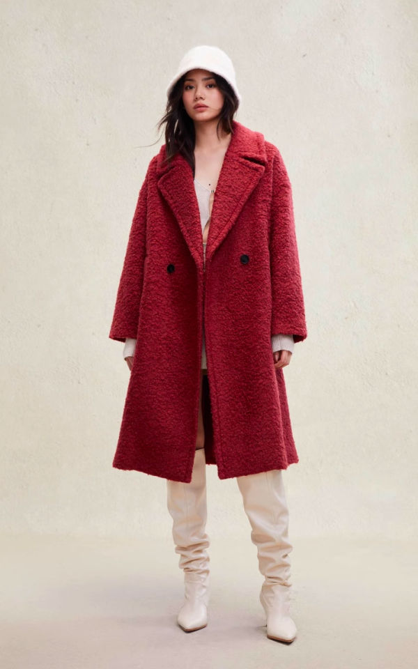 【红大衣】ONLY2023冬季新款时尚宽松含绵羊毛翻领中长款外套女|123336036