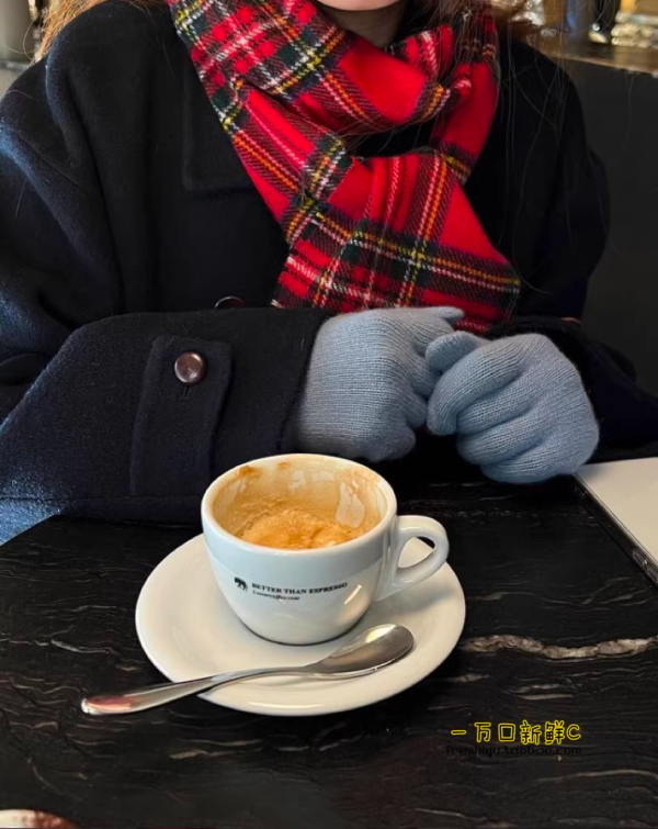 8、红色苏格兰格子围巾+藏青外套