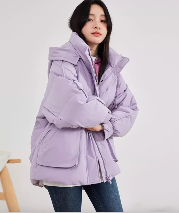 【紫色羽绒服】雪中飞秋冬新款羽绒服连帽女休闲时尚短款大口袋挡风保暖外套