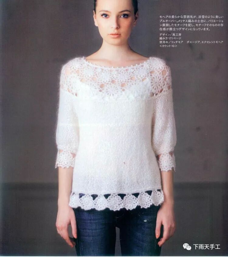 漂亮的花片拼接小衫,马海毛编织更好看