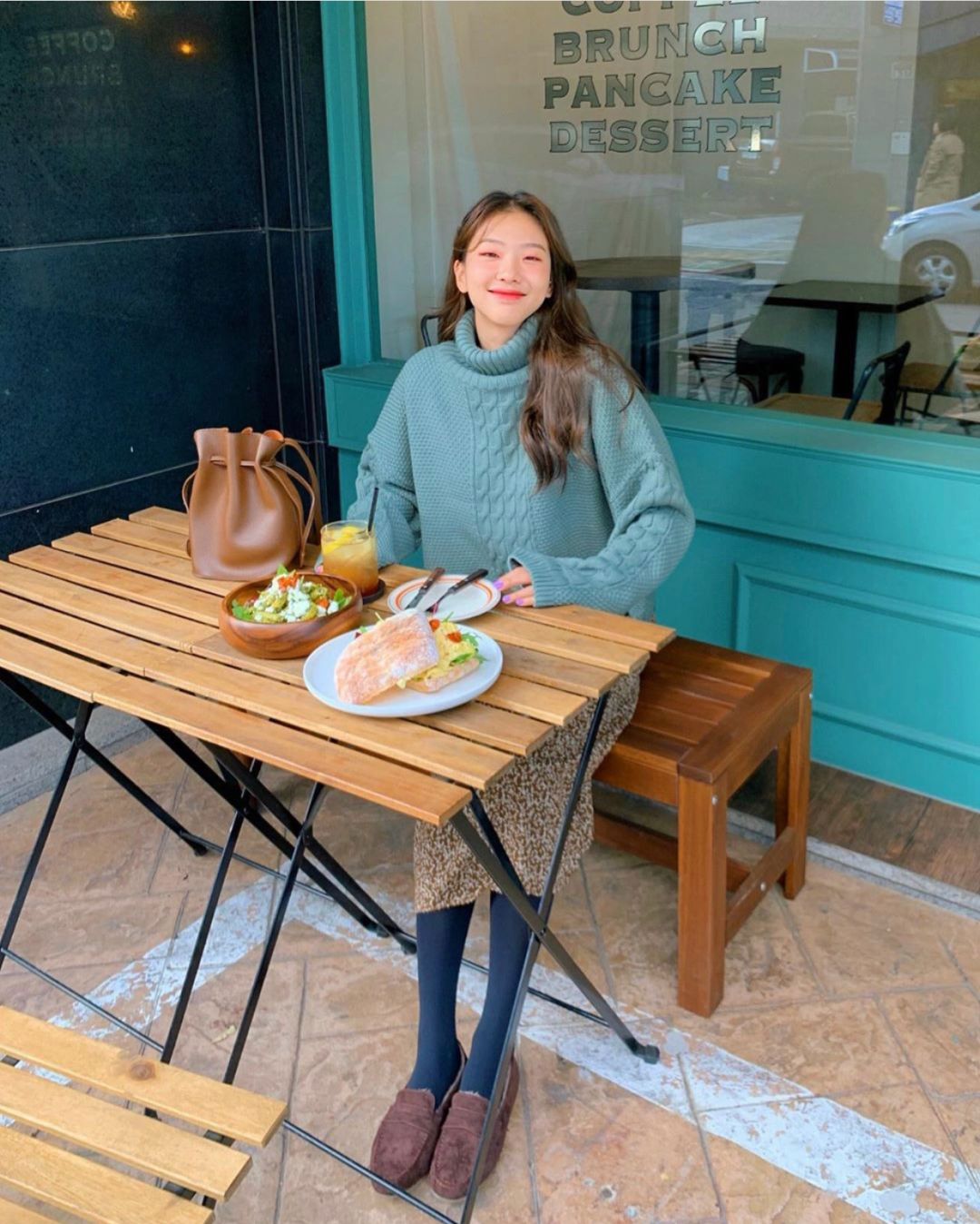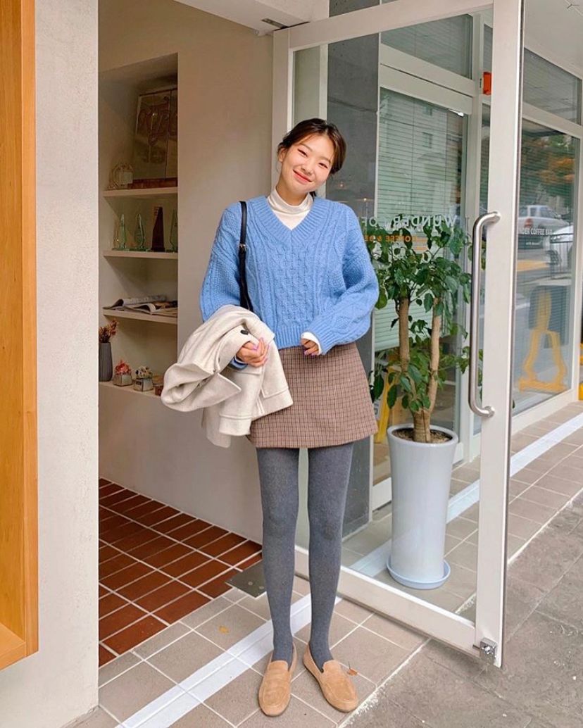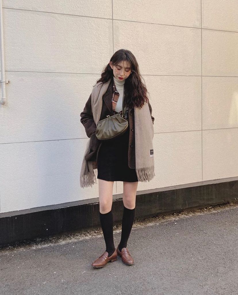 小高领毛衣+迷笛裙+A字裙,毛衣+毛衣,时髦的正确打开方式在这里 !
