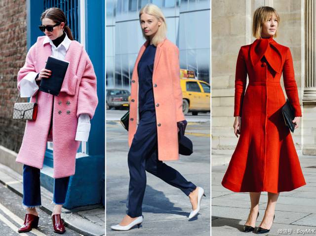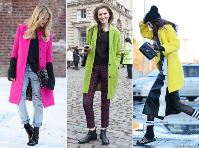 如果你混搭技能有限,只要内搭一切从简,摒弃过多的印花及装饰,一件彩色大衣就足够清新时髦,绝对能让你从满街单调基础色中脱颖而出。
