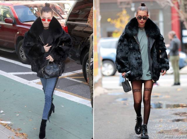 如果材质过于厚重(例如皮草等),更是雪上加霜。即使是Bella Hadid这样的时髦人,厚重黑色皮草加身也充满暴发户老婆的气息。▼
