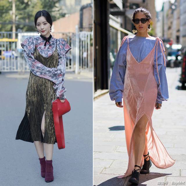 混搭的玩法还有很多,比如今年流行的睡衣风吊带裙,春夏时单穿或者搭配基础款T恤,秋冬则可以把内搭变成毛衫或衬衣,轻薄与厚重材质的对撞让搭配变得丰富又有趣。▼