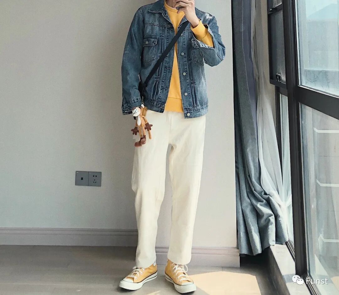 所以瘦子在选择衣服的时候,尽可能的选择比较浅的颜色,例如:,白色,米白色,灰色, 水洗牛仔蓝,或者卡其色。