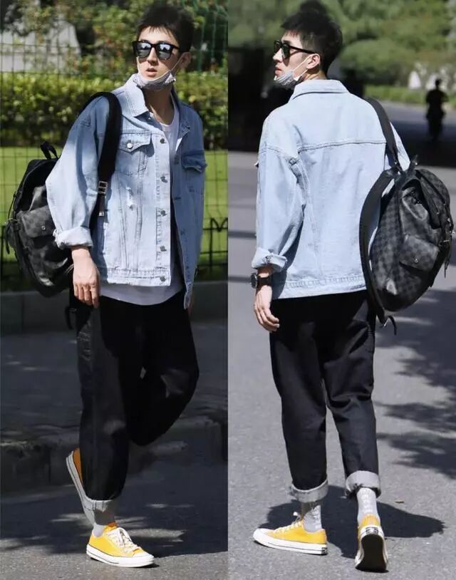 牛仔外套+休闲帆布鞋