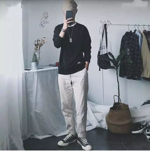 一直流行的工装裤,黑色更是百搭,收裤脚的更显腿长,文艺又狂野。推荐男生必须要入手的一件工装裤。