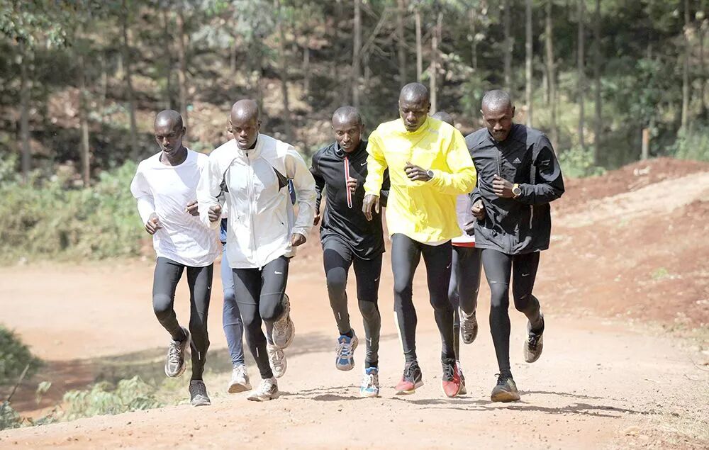 另外,其实在健身房之外的跑步、体操等领域,单穿legging训练的操作早就屡见不鲜了。随便放一张肯尼亚马拉松运动员训练的照片,我们都能看到清一色的单穿legging,这么多运动员都这么做,我们在健身房里单穿又何妨呢?