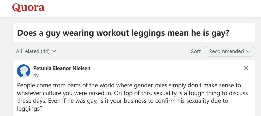 ● Quora下的提问:穿健身legging的男生是不是gay?