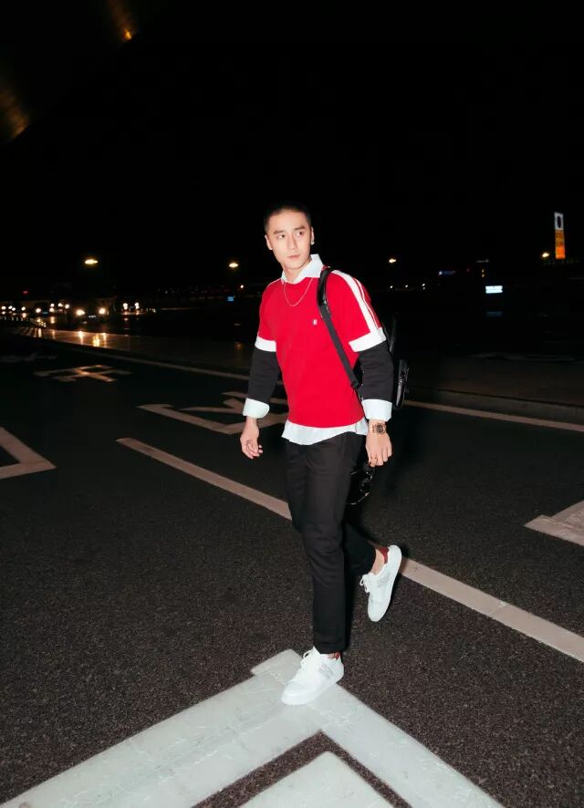 前些天身着Burberry涂鸦卫衣出发看秀的吴亦凡,搭配羊毛长裤和格纹拼皮革运动鞋,扮起英伦风轻松时髦。