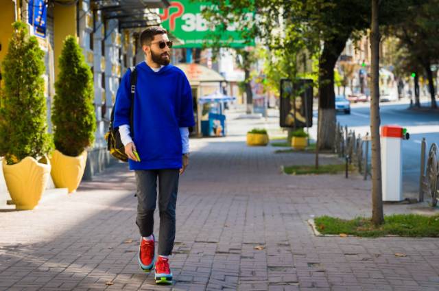 卫衣搭配运动裤适合瘦骨架的人,而且紧口卫衣本来就比较挑人,建议偏胖体质的boy尝试H型宽口。