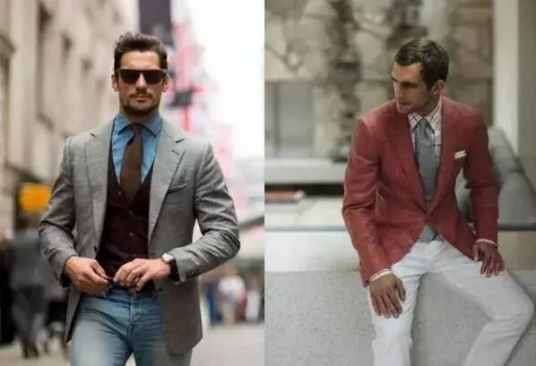 再进一步,以休闲裤替代西裤效果会更佳。这一点上,可以用西装搭配牛仔裤来打造混搭风,也可以选择不同套系的西服与西裤搭配,从色彩上进行区分,就更显雅痞了。