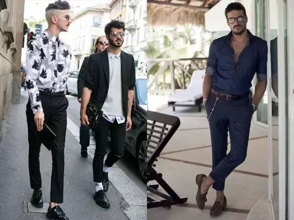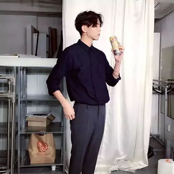 #1.牛津衬衫 X 西装休闲裤衬衫搭配西装裤,这应该不用多说,看似正装却又休闲的氛围,男士大部分都是这样穿搭吧。搭配百搭西装裤,选择直筒的版型,塑造增高的效果。
