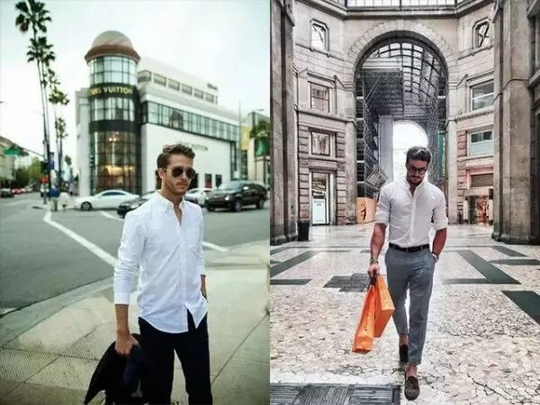 高阶型男可以尝试牛津衬衫与高领 T这种新鲜的穿搭,在衬衫里面搭配一件高领上衣,你会发现竟然意外match。而里面高领 T的颜色尽量选择深色系,保持低调,毕竟主角还是外面的牛津衬衫,喜欢的男士有机会可以尝试看看