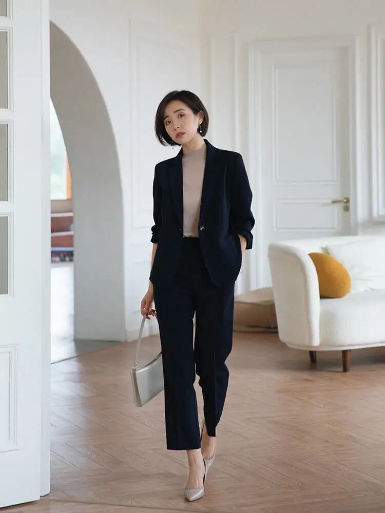 过长的西装不仅会压抑你的身材,还有可能会影响你整体的造型魅力,调整西装的设计长度,这样和同款西裤搭配,整体好看不失韵味,非常有时尚高度,配上高跟鞋就超级高雅。
