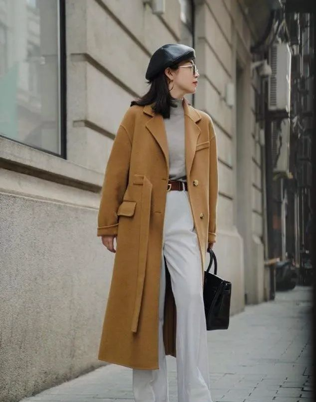 比如冬日里选择流行的毛呢大衣穿搭,对于小个子女性来说,穿搭的时候,如果采用敞开式的穿搭方式,再配上高腰的裤型修饰,效果立马就不一样了。像上面这三种搭法,长款的呢大衣,配上高腰的裤型搭配,配合黑色的腰带加持,轻松提升了腰线的位置,简单搭配轻松显高。