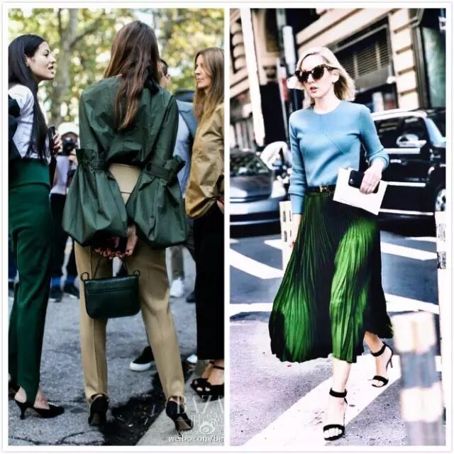 ▲我们的街拍小花们,早早穿上草木绿登上国内大刊的版面~
