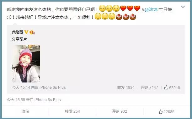 3月12日,女演员赵薇的生日,凌晨开始好朋友们的祝福就轰炸了微博。