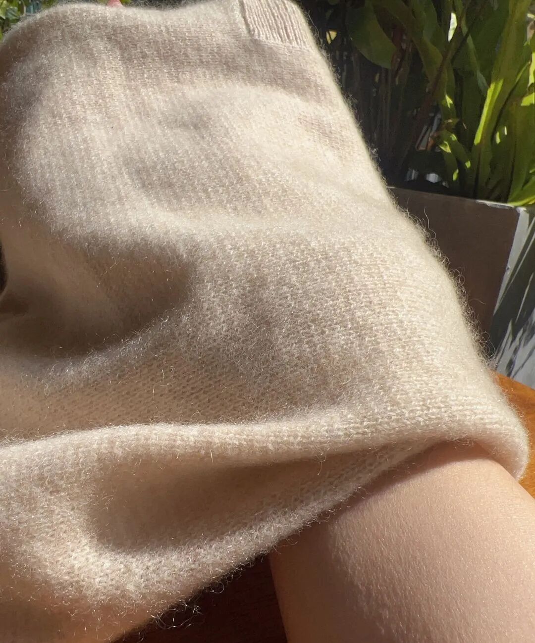 这种oversize年轻人也好喜欢,我同学家女儿,说穿了就不想脱,实在太舒服,山羊绒加了弹性拉大,Q弹软糯的感觉。