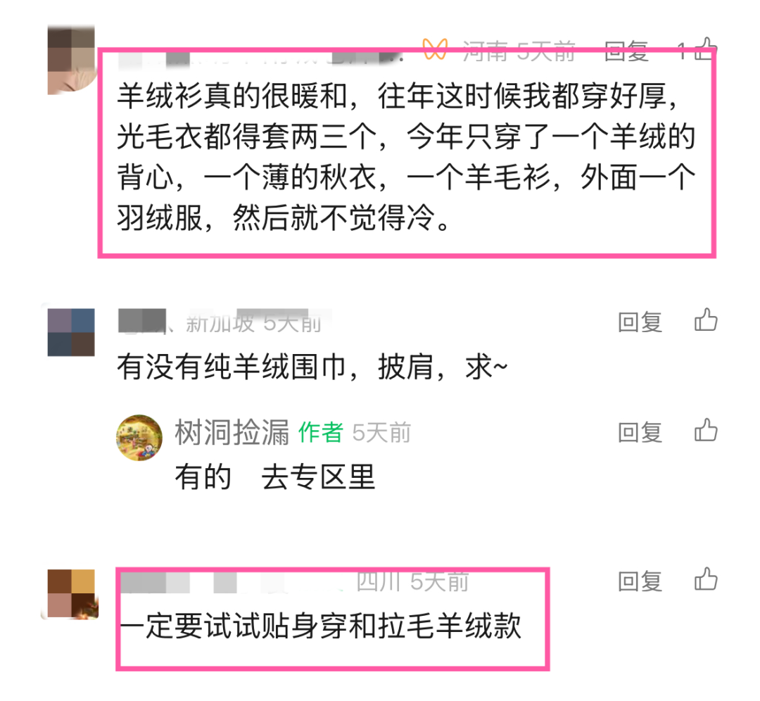 懂行的男友知道,今年的鹅绒服和羊绒从原料端就在涨价,以前700块钱只能买件羊毛衫,今天可是羊绒,还有十来款都才四五百块。