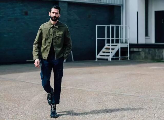 除此之外,工装夹克大都是棉和尼龙混纺,扛造耐磨,硬汉感十足。