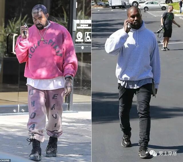 ▲ 肯爷kanye west其实并不胖,只是宽大的嘻哈穿搭(左)易让人有变胖的错觉