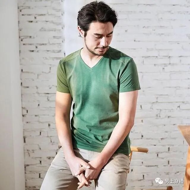 其实露脖子也是有技巧的,透过衣服领口的设计来修饰,就能使颈部有伸长的效果。肉肉男的穿搭好伙伴,非「V字领」莫属,相较圆领,V领多露出来的那一小块,能使颈部感觉向下延伸,同理可证,古巴领衬衫也能达到这种效果。