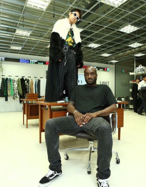 这主要还归功于OFF-WHITE设计师Virgil Aboloh(也是侃爷的造型师)主动在ins 上 po出了和他的照片。