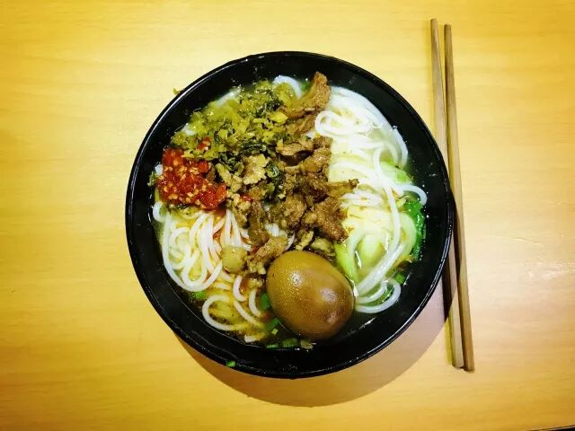 评价:鲜香丝滑的杂骨汤、咸咸碎碎的榨菜、一勺腌菜全部都盖在白白嫩嫩的米粉上,再拌上一大勺油辣椒或者剁辣椒,那香气,那味道,哧溜一口,保准让你忘了烦恼。在寒冷的冬天,捧上一大碗热气腾腾的米粉,满足得简直就像拥有了全世界。