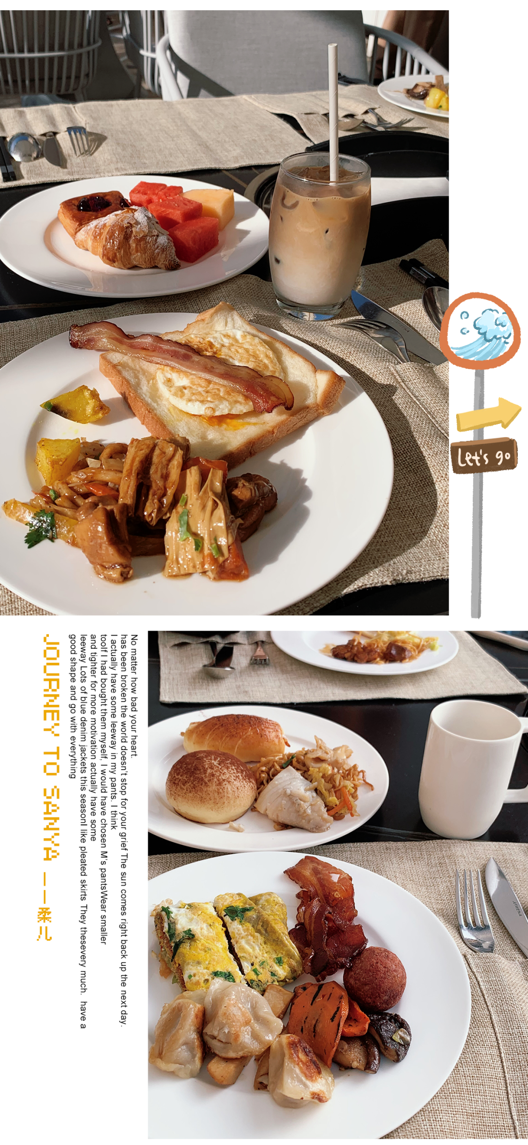 早上7点-11点自助早餐,餐品超多,中式西式和本地特色都有,咖啡面包这些也都是标配。酒店还有私人海滩,海边酒吧,泳池,spa,整个酒店园区就可以逛整整一天,要不是姐没来过三亚,酒店真的可以满足你所有的行程。