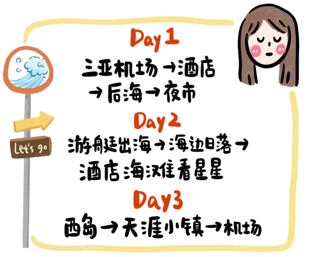 来了~你们要的三亚游记+攻略来了!这次行程是临时决定的,所以我就花了一天的时间做了攻略,先说一下我三天的行程。