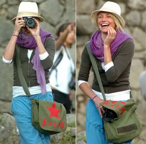 但后来随着国外包包的传入,军挎逐渐被忍嫌弃,一度退出历史。但这种简单大方但老掉牙的挎包,传到外国之后立马成为明星追捧的对象,“美国甜心”卡梅隆挎上“为人民服务”军绿包很是拉风啊!