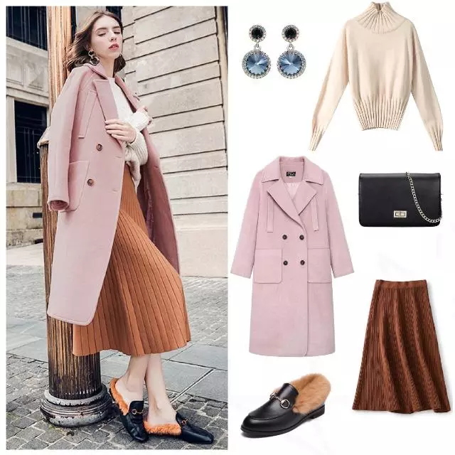 大衣的领子是小翻领的设计,喜欢立领设计的女人也可以把领子竖起来哦,在里面穿上一件粉色的毛衣裙,裙子的颜色是比大衣颜色要淡一点的设计,而且因为是含有羊毛的,所以穿在身上很舒服哦,一点都不扎人,搭配上一双粉色的皮鞋,是细高跟的哦,满满的温柔气息瞬间就出来啦!