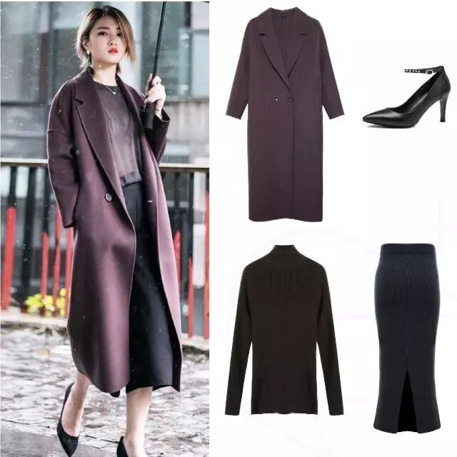 紫色的衣服都是很显气质的,这件大衣也不例外,大衣采用的是大翻领的设计,所以穿在身上一点都不会显得很小气,衣服是双排扣的款式,双面呢的材质让衣服看起来很贵气,在里面穿上一件紫色的打底衫或者深棕色的高领毛衣都是很好看的哦!