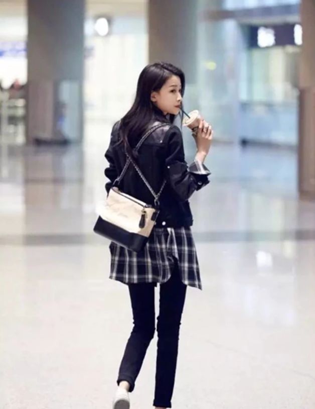 不过话说回来,我之前从来不穿这类格子衬衣,这次是被下面的照片圈粉的。本来想在网上找找Chanel流浪包哪个颜色好看。然后看到这张搭配,瞬间决定了要黑白配色的包包。并且也准备买黑白格子的衬衣搭配这个黑白色的包(黑色的小皮衣和牛仔裤想必大家都有。)