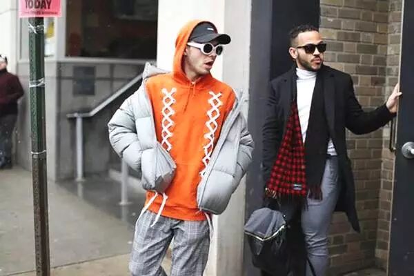 近几年无数的街拍照片中都可以看到男士们多以这种颜色的长袖帽衫、卫衣、马甲等款式的衣服为流行衣品,它能很好的衬托我们肤色的白皙。