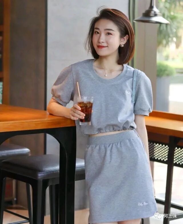 就像这位时尚博主的这身穿搭就很好看,服装虽然是很简约的设计,但是却很有设计感,上衣是短款设计,下装是一条短裙,虽然是类似T恤的穿搭,却穿出了休闲又减龄的效果。