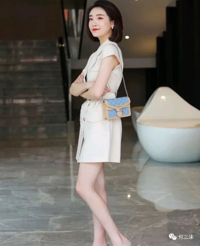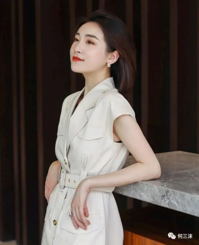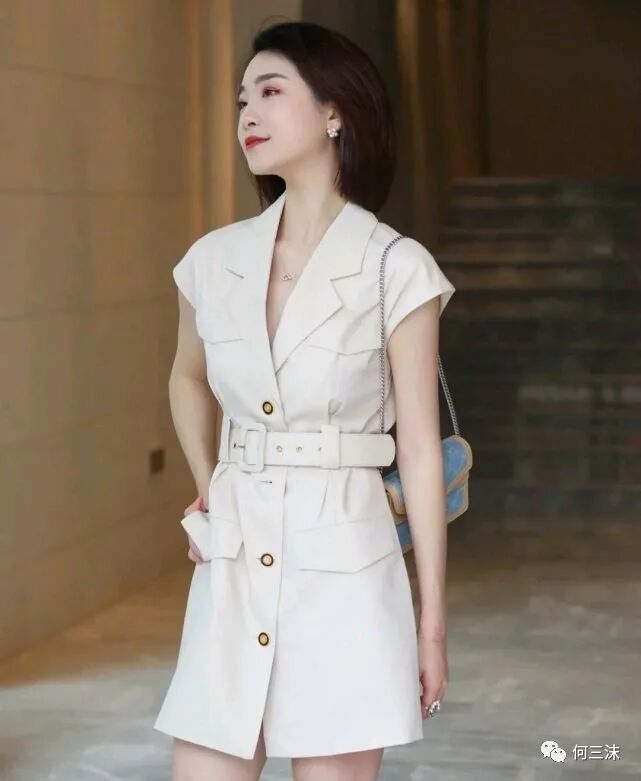 可以借鉴一下这位时尚博主的穿搭风格,她选择了无袖设计的米白色西装裙来穿,虽然是很简约的设计,但是版型的设计却很高级,不仅穿出了干练又精致的美感,而且还穿出了优雅的气质,重点是比较减龄,不用很夸张的去扮嫩,就能达到减龄的效果。