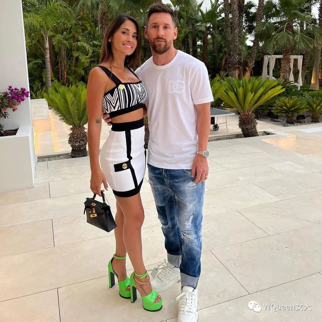 安托内雅和老公梅西合影的时候,穿着黑白配色的短背心、配上同系列的短窄裙,服装上金扣点缀,让整套服装更具特色,加上安托内雅一直有健身运动的习惯,弹性材质直接衬托出她的好身材,巧妙露出乳沟、腹肌、美腿,一次秀好秀满,感觉梅西就是再度被老婆辣到晕~