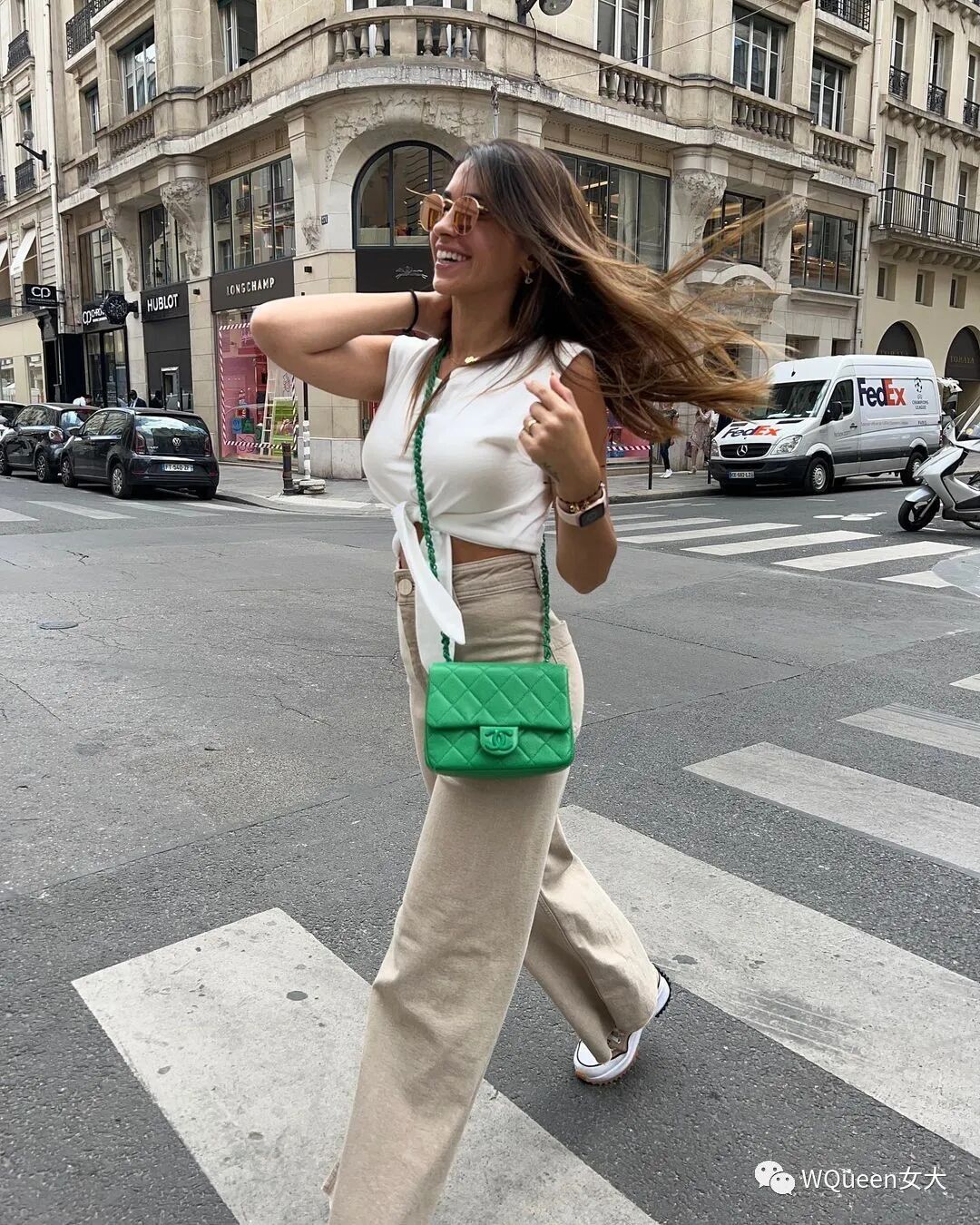 滑了滑安托内雅的IG,不难发现她身上的服饰重复率很高,喇叭裤尤其是她私服的必备单品~上窄下宽的版型,就视觉上就能拉长腿部线条,加上裤子在臀腿的位置完整贴合,更能凸显臀腰处曲线,即便是娇小的安托内雅,也能靠喇叭裤打造诱人身段。